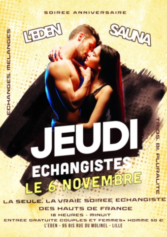 JEUDI : Après-Midi Mixte & Soirée 100% Couples dès 19H00 à minuit