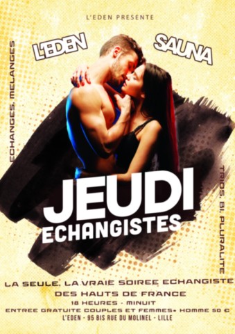 JEUDI : Après-Midi Mixte & Soirée 100% Couples dès 19H00 à minuit